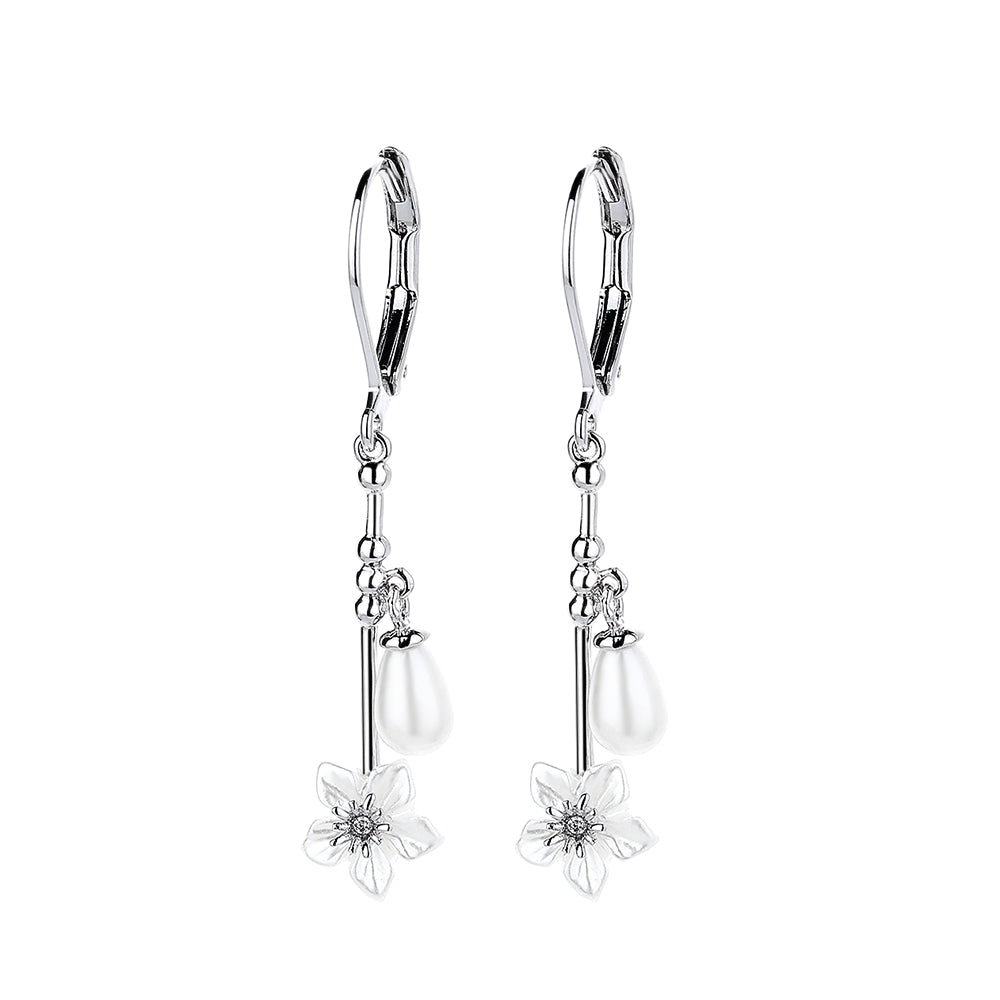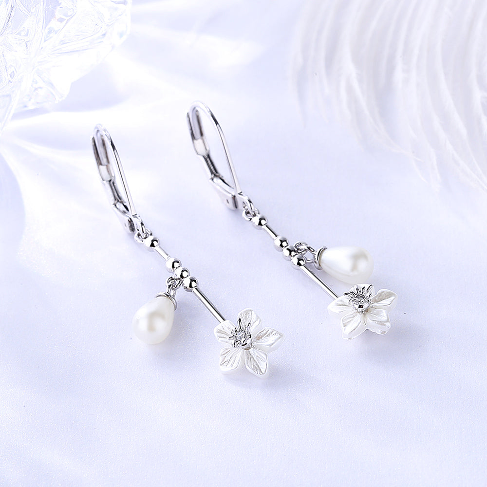 Cultured Pearl & Sterling Silver Floral Leverback Drop Earrings