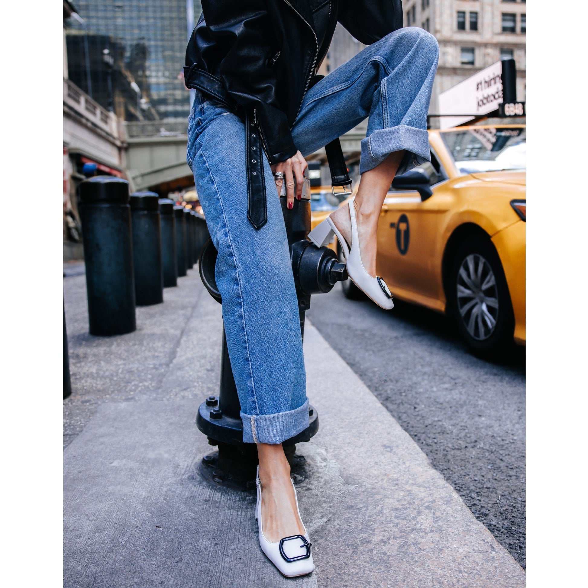 Timeless soft leather slingback with a flare block heel. The square toe sandal, embellished with a decorative buckle, is guaranteed to elevate your outfit.