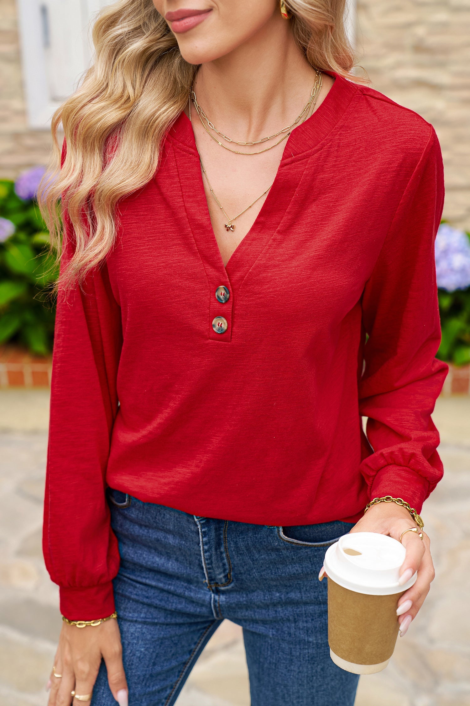 - The V-neck design adds a touch of sophistication to any outfit, suitable for various occasions.
