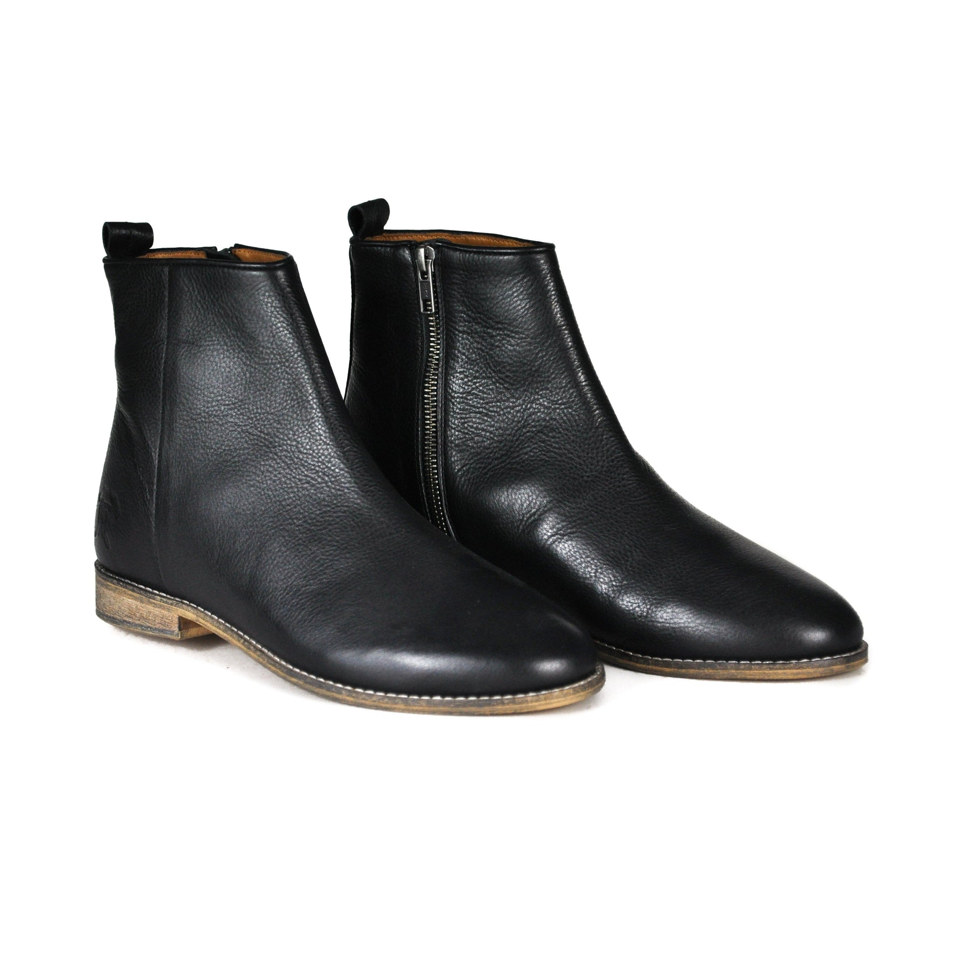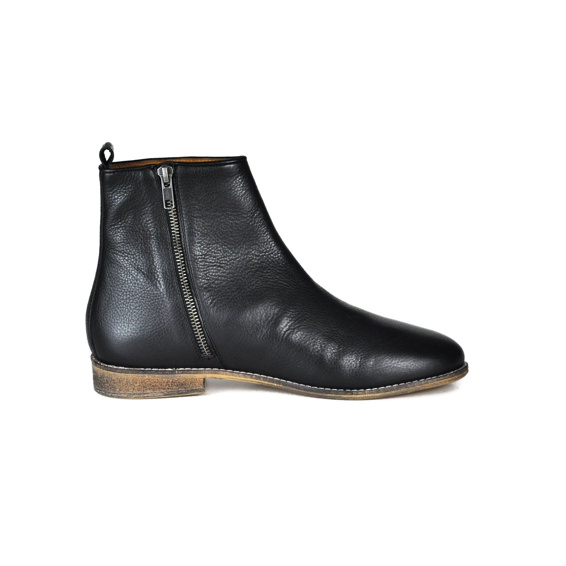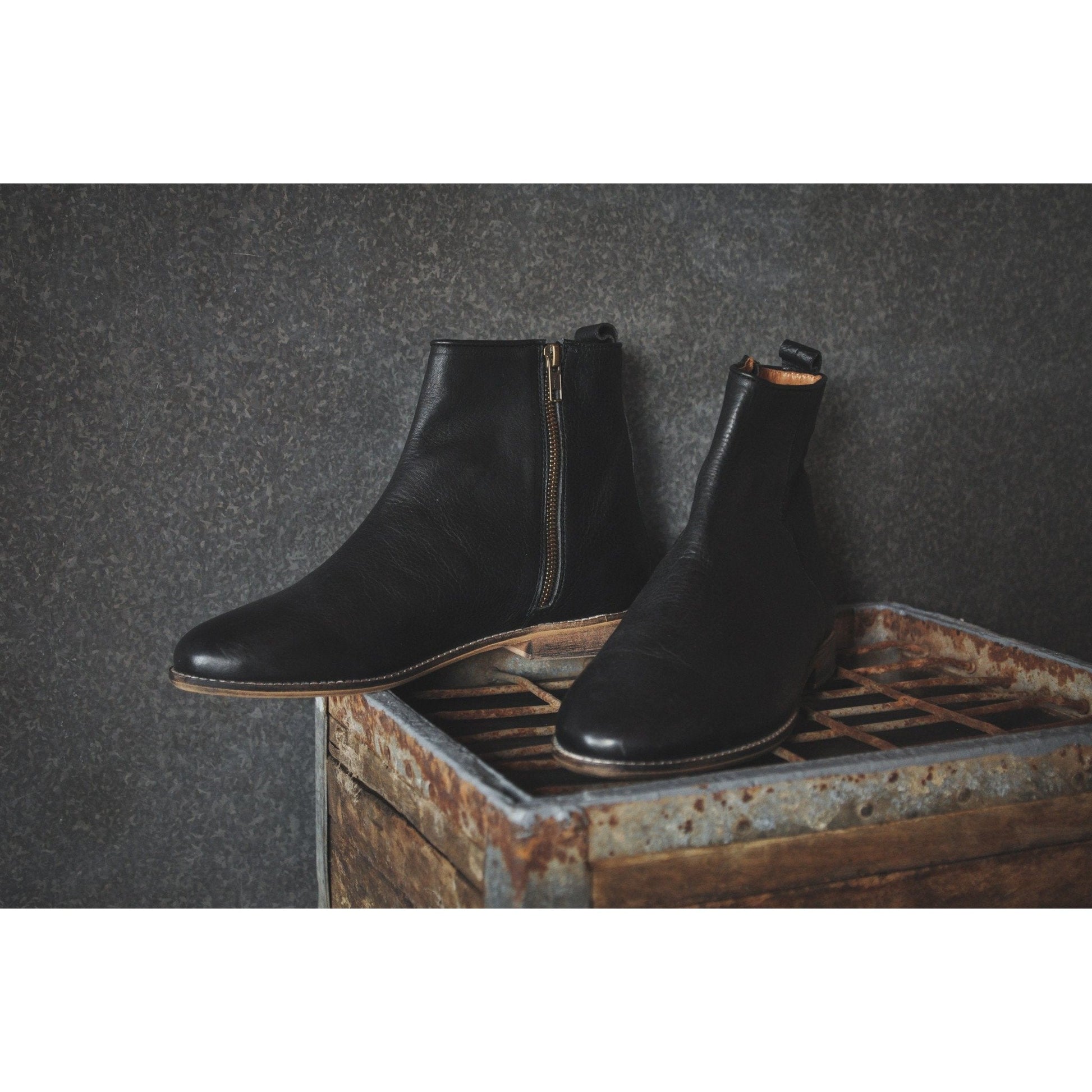 An ankle boot with an inside (medial side) zipper. Most footwear historians (don’t laugh- they exist!) consider this style an updated version of the Chelsea boot – as the zipper was not invented until nearly 100 years after elastic! The Gunnar is the Ronan’s big brother…both built on the Valor last with same leather, lining and outsole. As on Ronan, we also hand burnish the toe and heel to give a warm vintage vibe. The wood block heel is also hand-burnished. To complete the vintage look these styles sport the same stitched leather “welt” (the piece that sits on top of the outsole and wraps around the entire shoe).