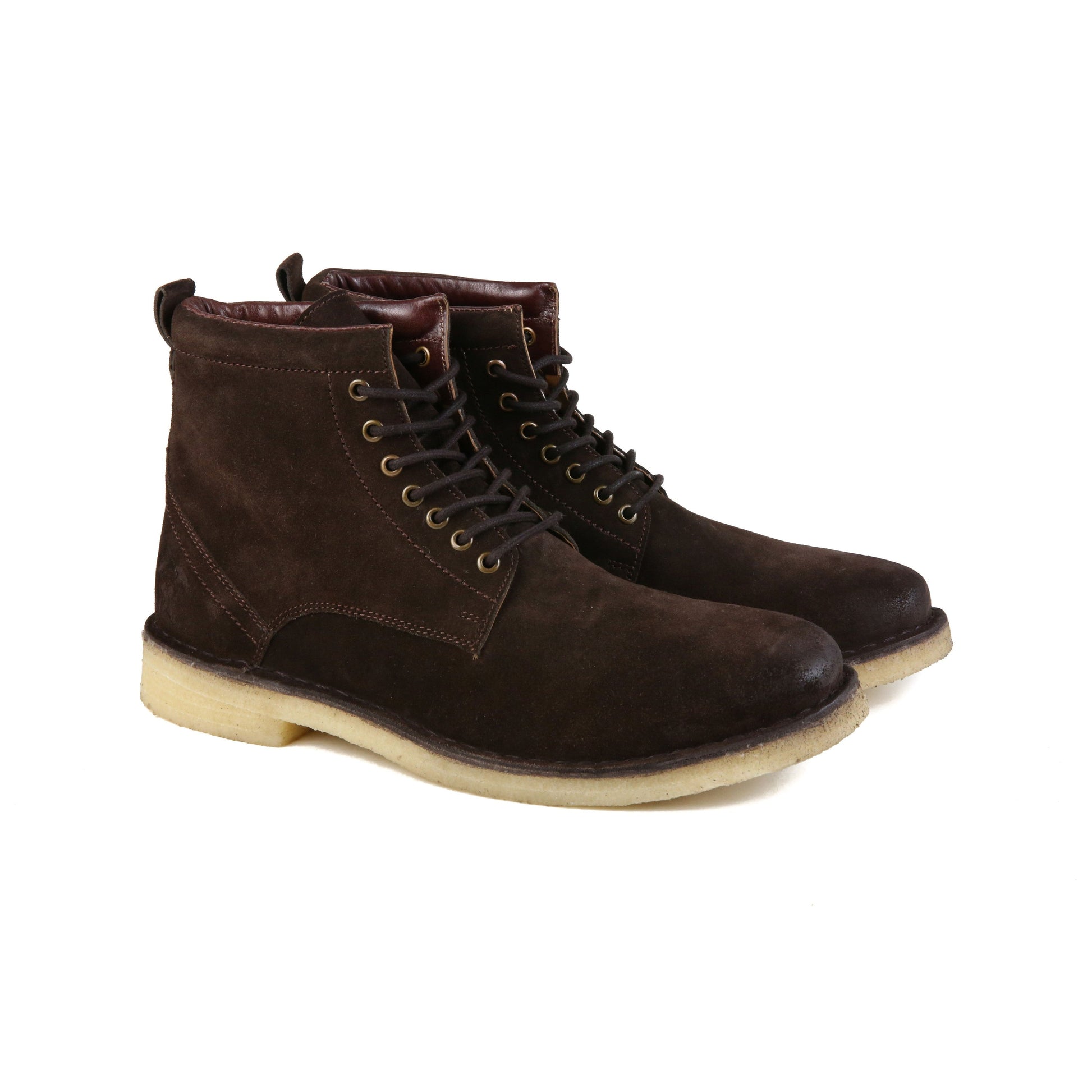 We built this handsome urban hiker six-eyelets high with a padded leather collar, on a stitch-out construction and a double layer outsole of real plantation crepe. Fashion-forward and traditionalist alike will love this perfect blend of cool, casual, and comfort. We lightly burnish the toes and heels of the suede uppers for added character. Available in classic sand, rich chocolate, and black black.