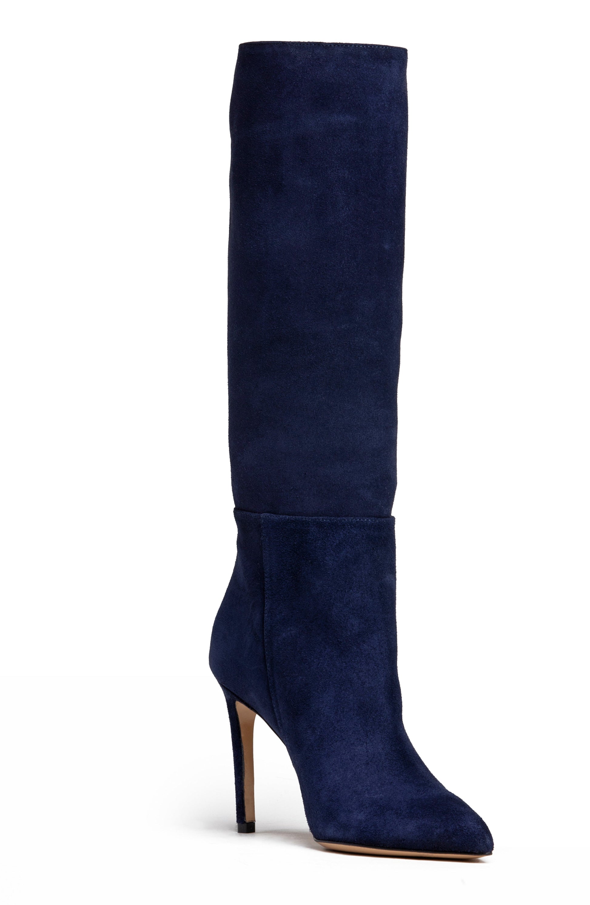 Comfortable and elegant stiletto suede boot. This knee-high stunning pair is crafted in suede and features an almond toe.